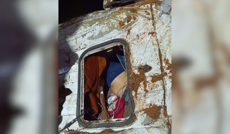 O socorro chegou ao local e conseguiu retirar o motorista com vida, mas ele precisou ser levado ao hospital para receber atendimento médico devido aos ferimentos causados pelo capotamento.