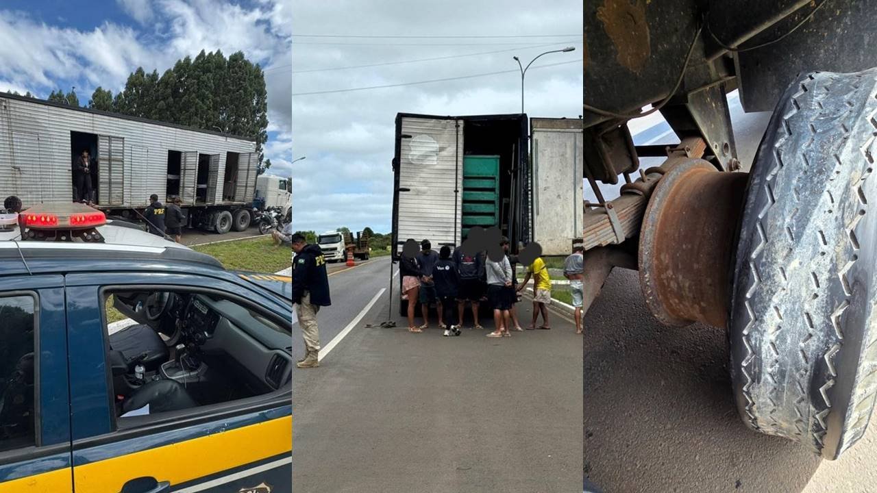 A Polícia Rodoviária Federal (PRF) flagrou, na BR-282, em Santa Catarina, um caminhoneiro transportando trabalhadores de forma irregular no baú de um caminhão.