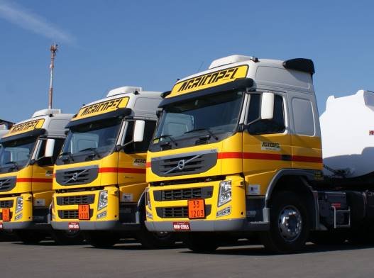 Frota de caminhões da empresa Agricopel