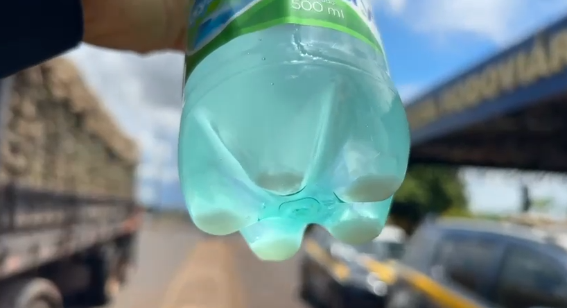 Garrafa com rebite encontrada com caminhoneiro