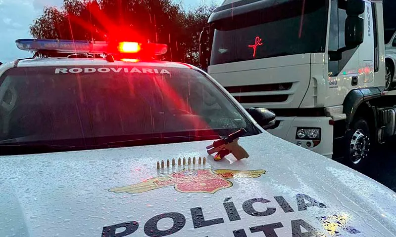 Um caminhoneiro foi preso em Palmital (SP) depois de ser flagrado com uma arma de fogo escondida no caminhão durante uma abordagem da polícia.