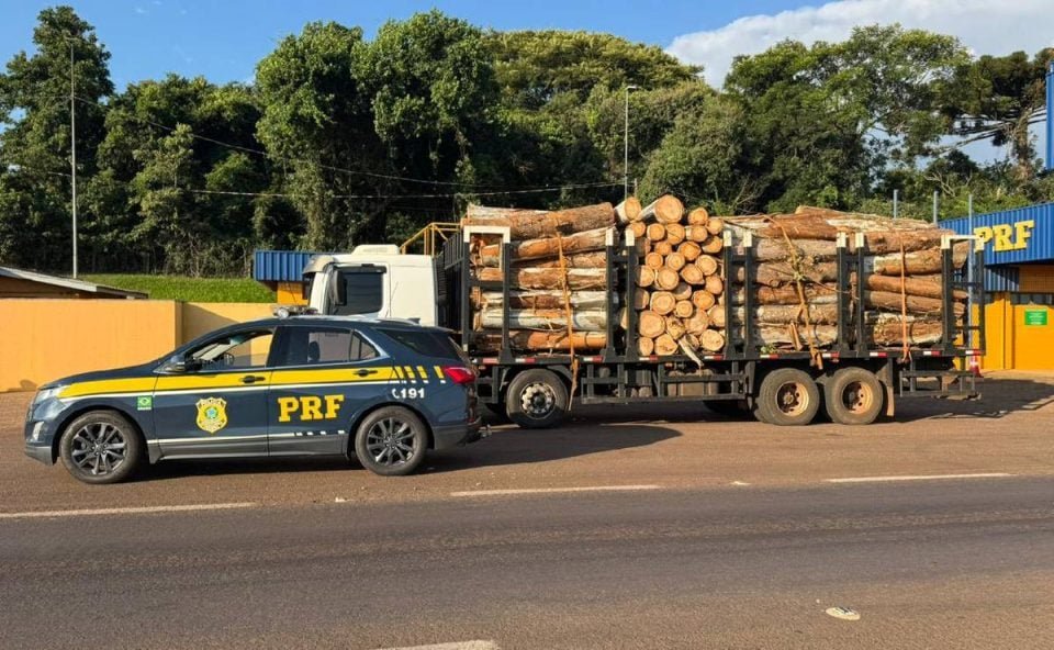 O veículo transportava toras de eucalipto e seguia viagem entre as cidades de Quarto Centenário e Cascavel quando foi parado para fiscalização.