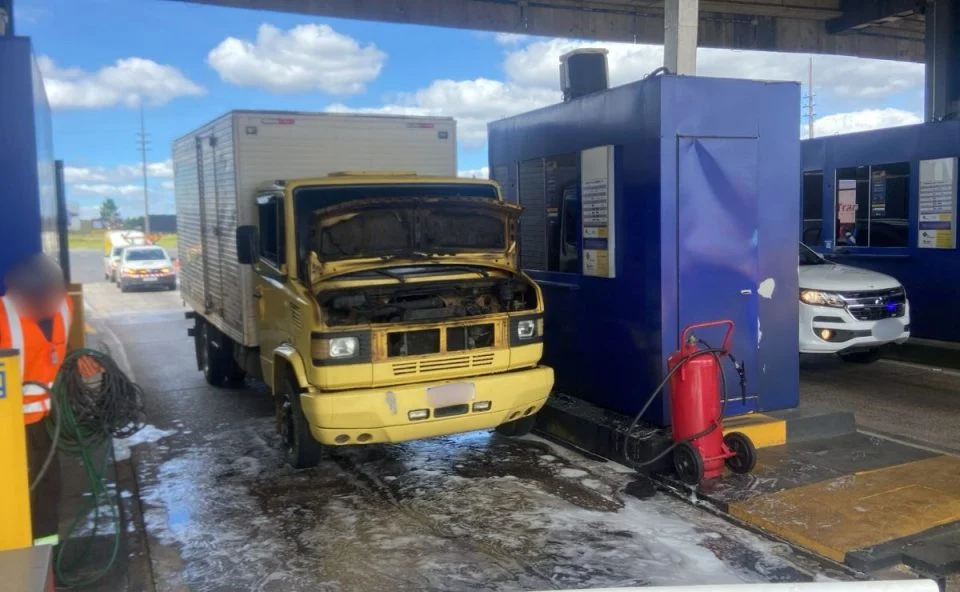 Um caminhão pegou fogo em uma praça de pedágio na BR-277, em São Luiz do Purunã (PR), e a situação quase terminou em tragédia.