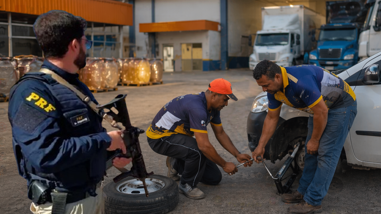 Dois trabalhadores aparece em um video realizando troca de um Pneu em frente a uma base da PRF. No vídeo, um dos colegas explica que orientou o rapaz a buscar um macaco emprestado com algum caminhoneiro que estava ali por perto, já que havia vários veículos estacionados no local.