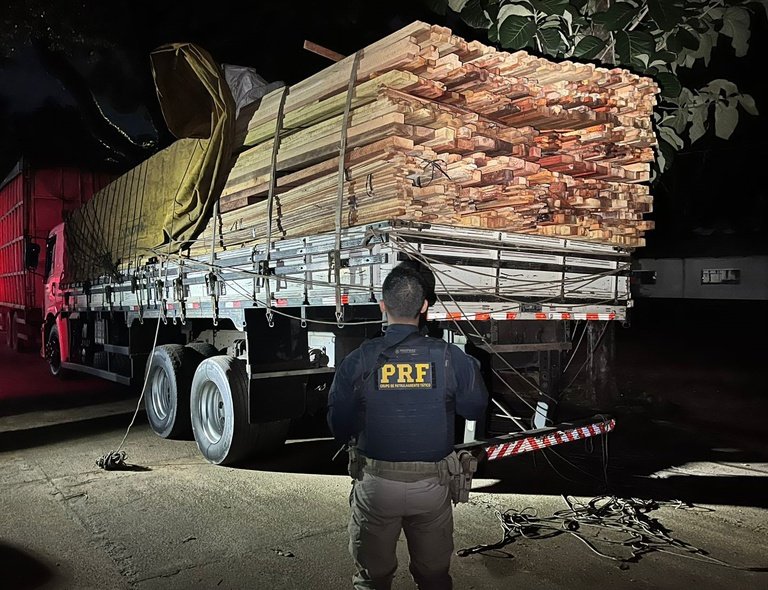 Além disso, a espécie da madeira transportada não batia com a informação registrada nos documentos, o que reforçou a suspeita de crime ambiental.