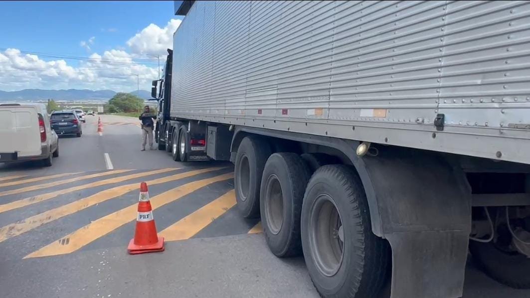 Durante a abordagem, os agentes desconfiaram da situação e resolveram fazer uma verificação mais detalhada no veículo. Foi aí que descobriram que a placa usada no caminhão era falsa.