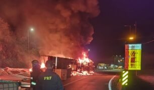 Motorista morre carbonizado após caminhão pegar fogo na BR-376, em Guaratuba