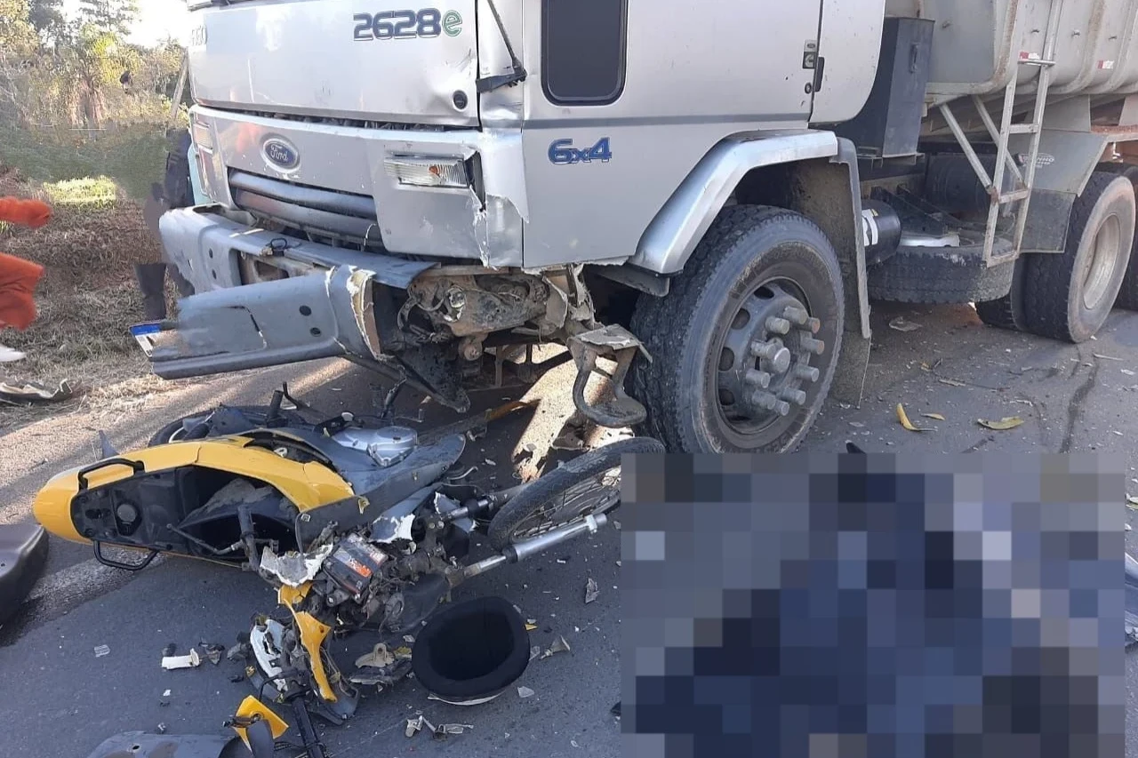 Um motociclista morreu após colidir com um veículo em sentido contrário e ser arremessado contra o canteiro central do KM…
