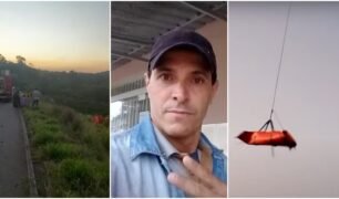 Vídeo: Fiação fica presa em carreta e técnico cai da escada e é arrastado