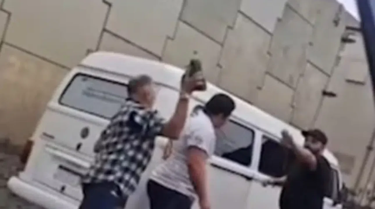 O condutor da van não deixou barato a atitude do caminhoneiro e acabou pegando um pau em formato de taco…