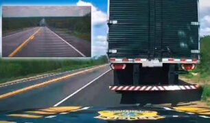 Caminhoneiro ultrapassa carreta em faixa continua na frente da PRF