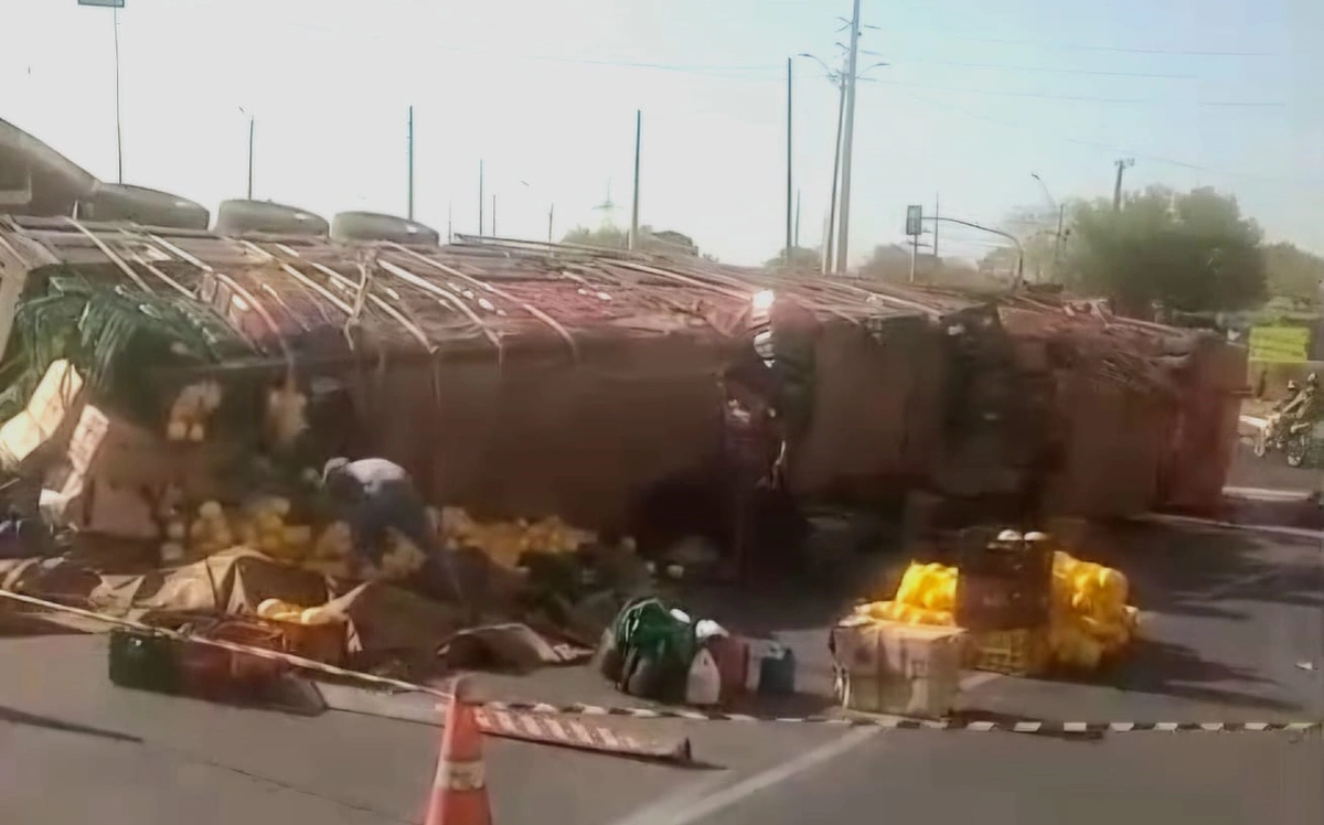 Um caminhão carregado de frutas tombou na manhã deste domingo (12) nas imediações de um viaduto na zona sul de…